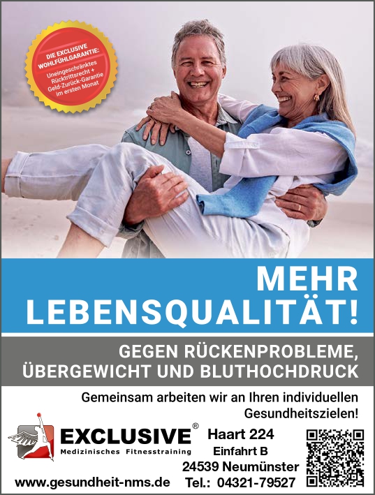 Seit Oktober 2024 sind wir der Partner von Exclusive Medizinisches Fitnesstraining für den Standort Neumünster.